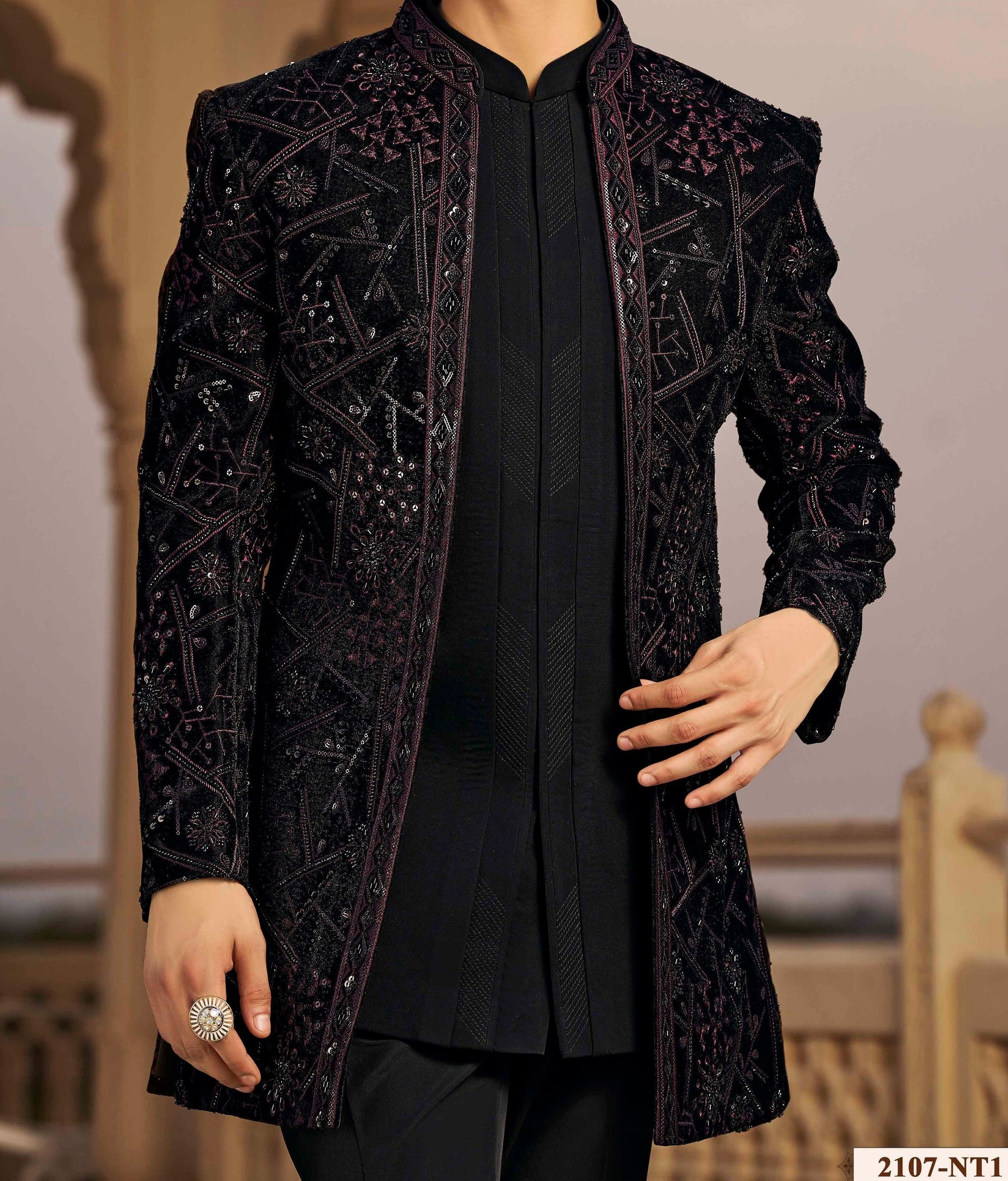 Redefine royal sophistication with our Exclusive Indo-Western Set, a perfect fusion of tradition and modern luxury. Crafted from premium Imported Suiting fabric, this ensemble offers a sleek and refined base, complemented by a micro velvet jacket that adds depth and opulence. The jacket is adorned with intricate threaded embroidery, reflecting exceptional craftsmanship and attention to detail. Ideal for weddings, receptions, and festive occasions, this Indo-Western outfit exudes regal elegance and contemporary charm in equal measure.