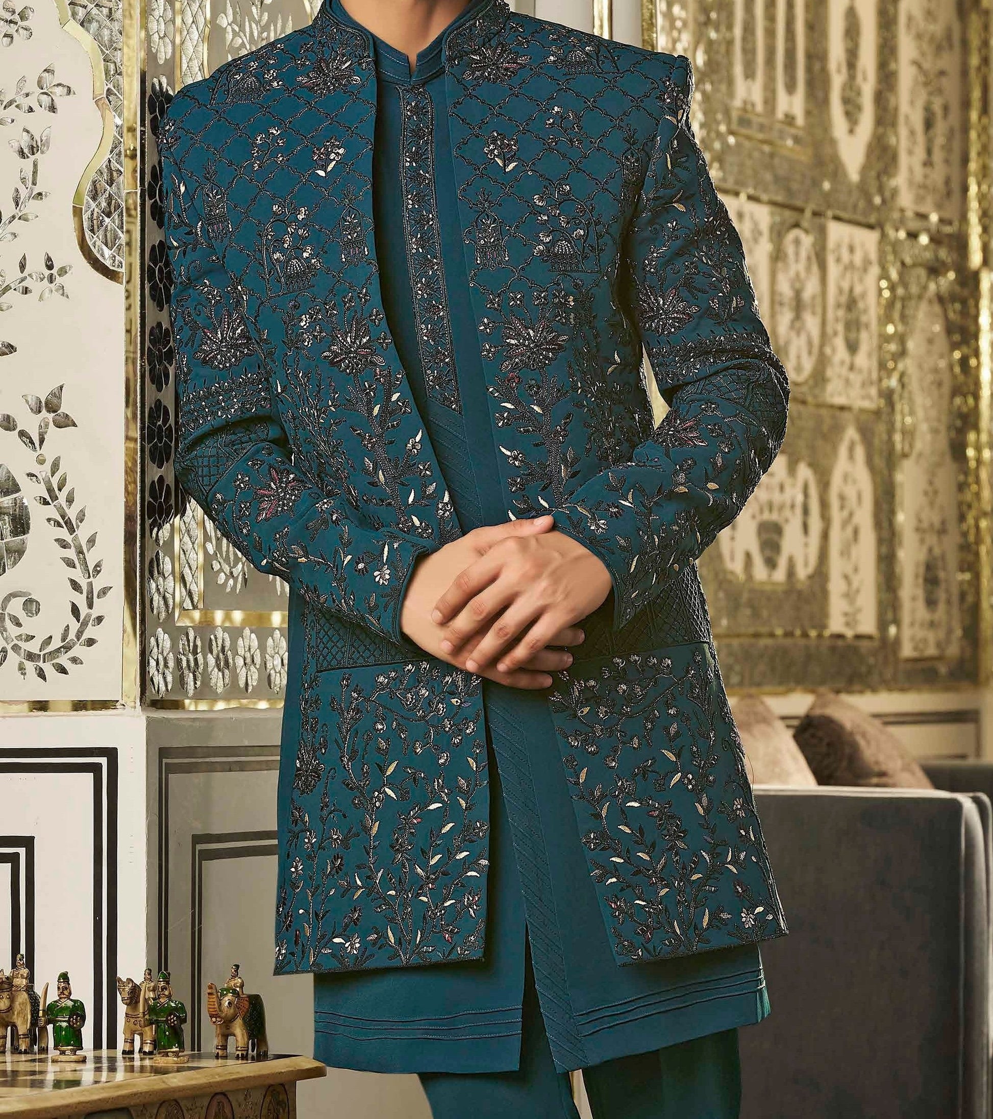Embrace refined sophistication with our Classic Threaded Embroidery Indo-Western Set, designed for the modern man who values elegance and tradition. Crafted from premium Imported Suiting fabric, this ensemble offers a luxurious texture and impeccable fit. The subtle yet intricate threaded embroidery enhances its regal appeal, making it a perfect choice for weddings, receptions, and festive occasions. Combining timeless craftsmanship with contemporary design, this Indo-Western set exudes understated grandeur and charm.