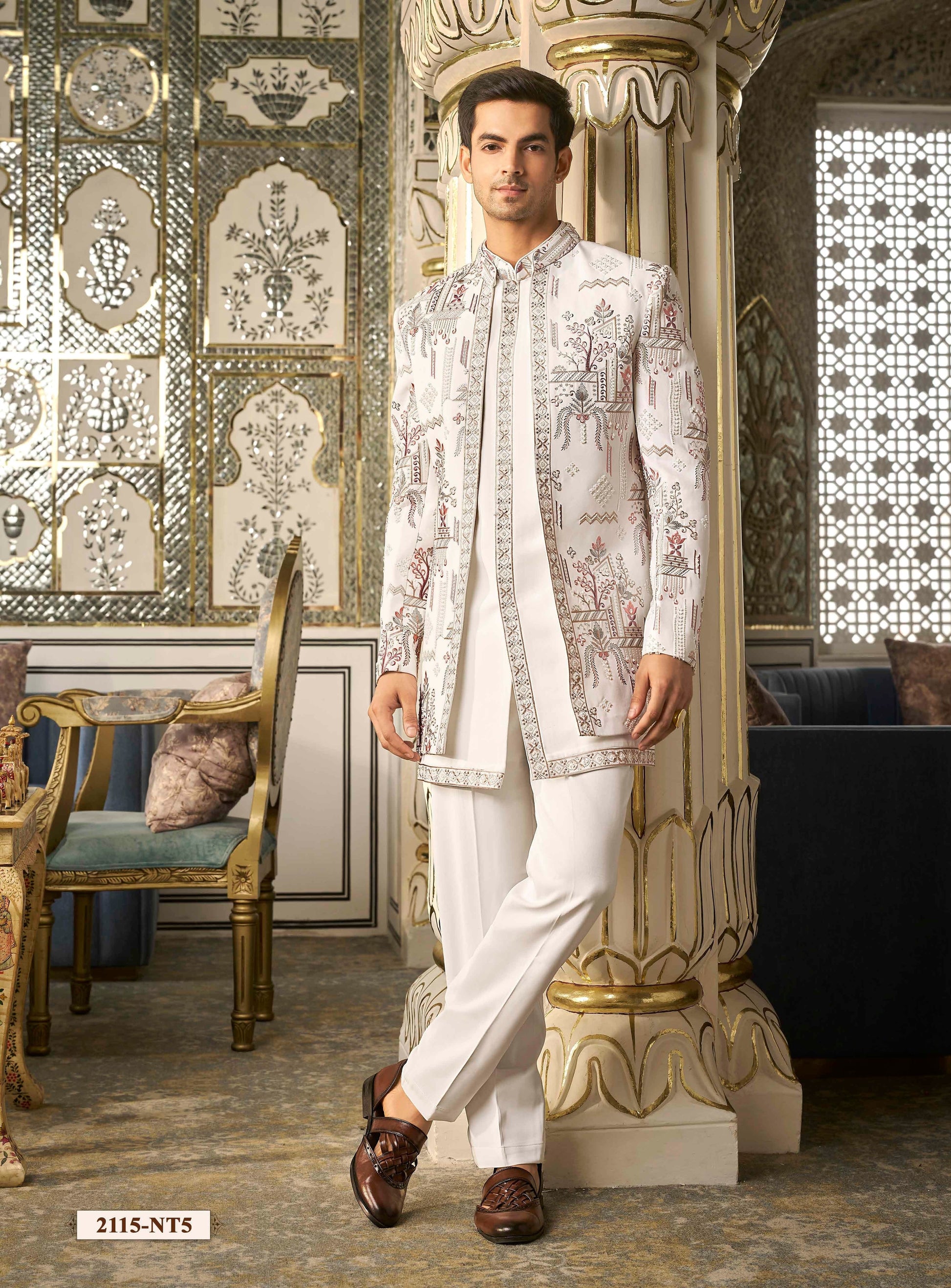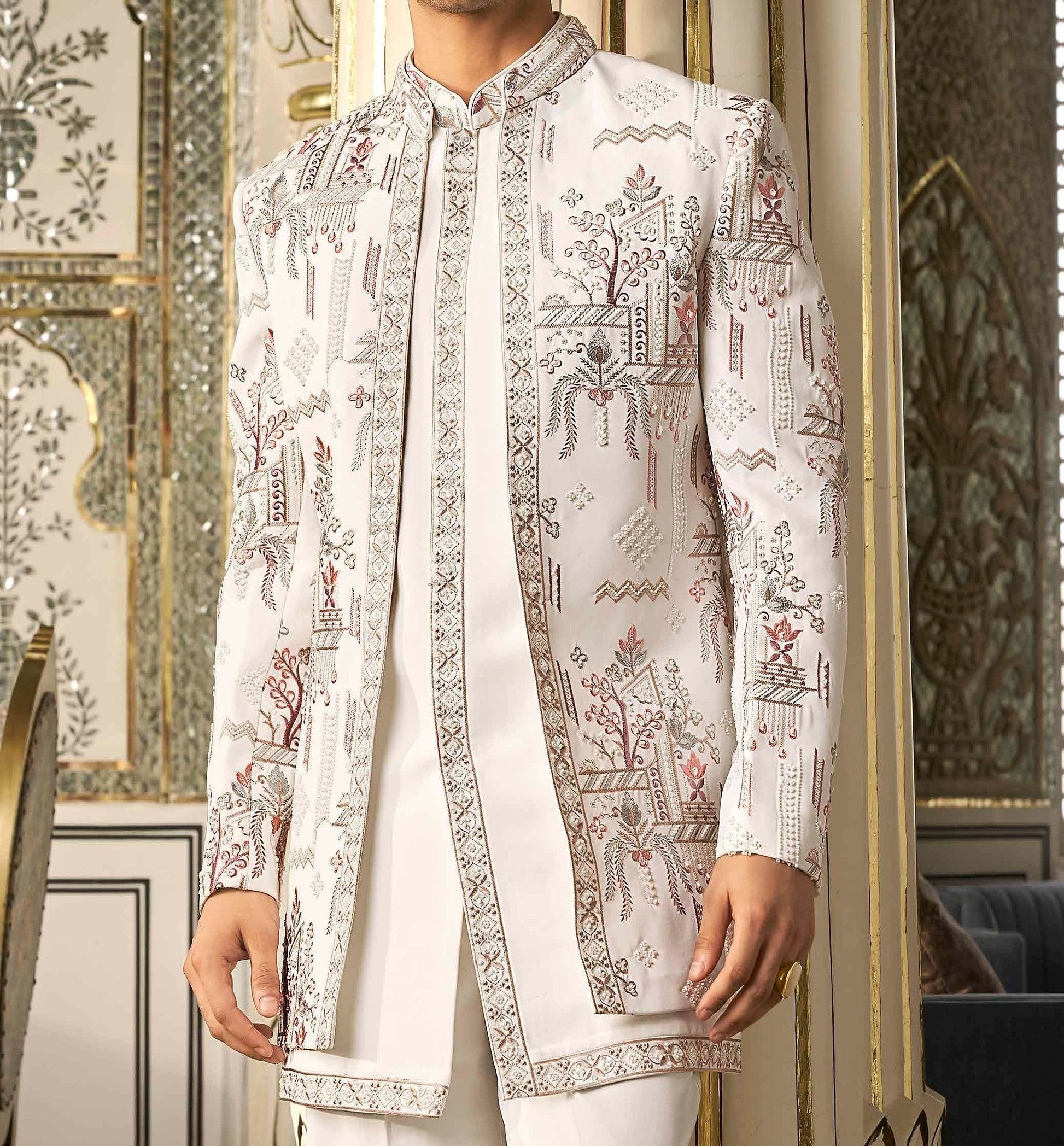 Exude timeless charm with our Elegant Threaded & Beadwork Indo-Western Set, crafted for the modern gentleman who appreciates a blend of classic artistry and contemporary design. Made from premium Imported Suiting fabric, this ensemble offers a refined silhouette with a smooth, luxurious finish. The detailed threaded embroidery paired with delicate bead embellishments adds depth and sophistication, making it an ideal choice for weddings, receptions, and festive occasions. Every stitch reflects precision and regal elegance, creating a look that’s both graceful and distinguished.