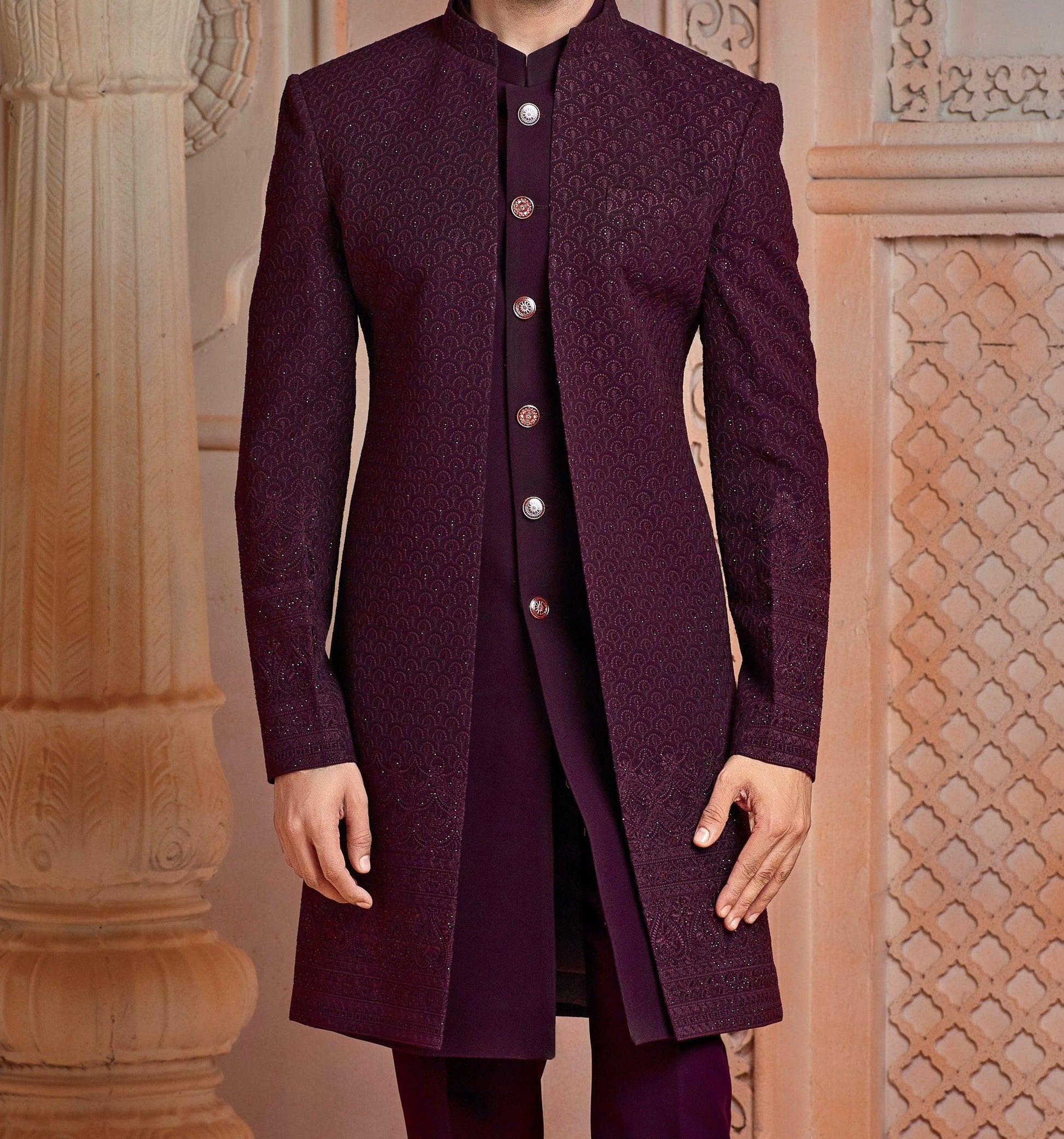 Elevate your festive style with our Indo-Western Set, a perfect blend of elegance and tradition. Crafted from Imported Suiting material fabric, this ensemble features intricate daman work that adds a touch of regal detailing and sophistication. The smooth silk texture offers luxurious comfort and a graceful drape, making it an ideal choice for weddings, receptions, and festive occasions. Designed with a modern Indo-Western silhouette, it reflects timeless charm and impeccable craftsmanship.