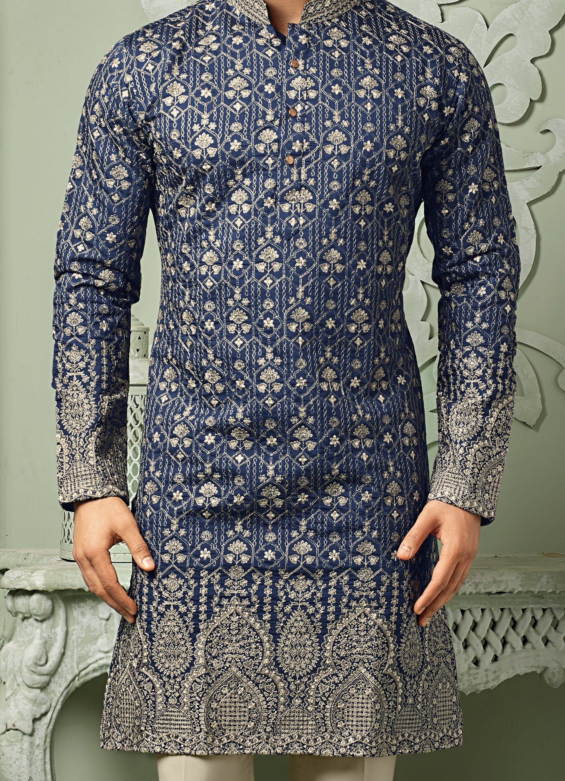 Redefine sophistication with our Rich Silk Kurta Set, designed for the modern man who embraces timeless ethnic elegance. Crafted from premium natural soft silk, this kurta features fine threaded embroidery work that reflects exquisite craftsmanship and attention to detail. Paired with a plain silk pant, the ensemble offers a perfect balance of tradition and contemporary charm — ideal for weddings, festivals, and special celebrations. The rich silk texture gives a natural sheen and a graceful fall, ensuring you stand out effortlessly in every occasion.