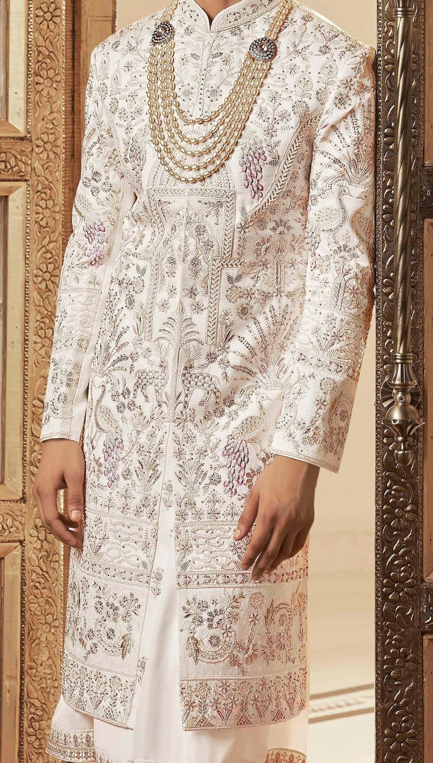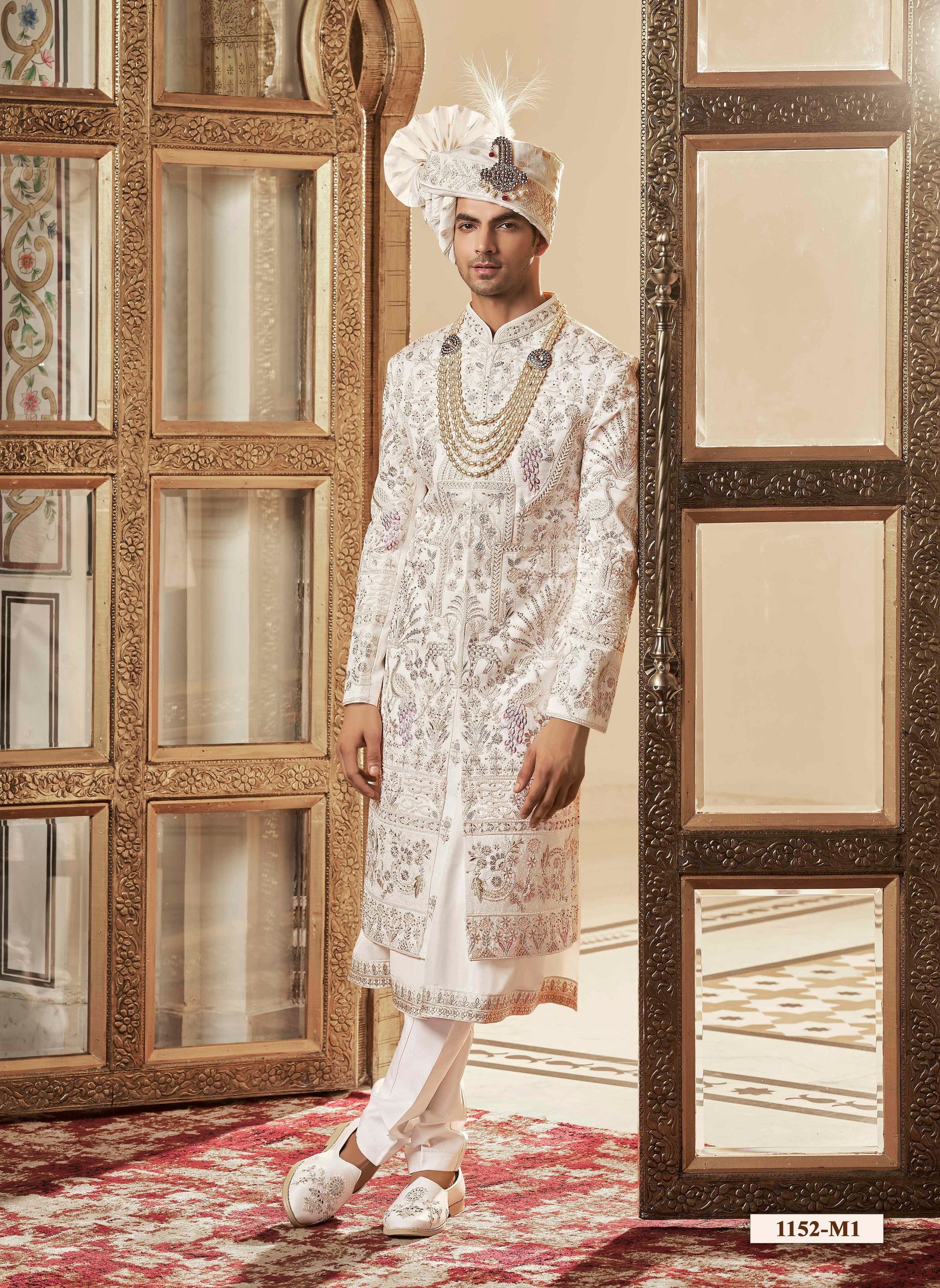 Immerse yourself in timeless elegance with our Classic Golden Zari, Threaded & Beadwork Sherwani, a masterpiece crafted for the modern groom who values tradition and sophistication. Made from premium Art Silk fabric, this Sherwani exudes opulence with its rich texture and royal finish. The intricate fusion of golden Zari, fine threaded embroidery, and delicate bead embellishments showcases exceptional craftsmanship and regal artistry. Perfect for weddings, receptions, and festive occasions, this Sherwani captures the true essence of grandeur and timeless style in every detail.