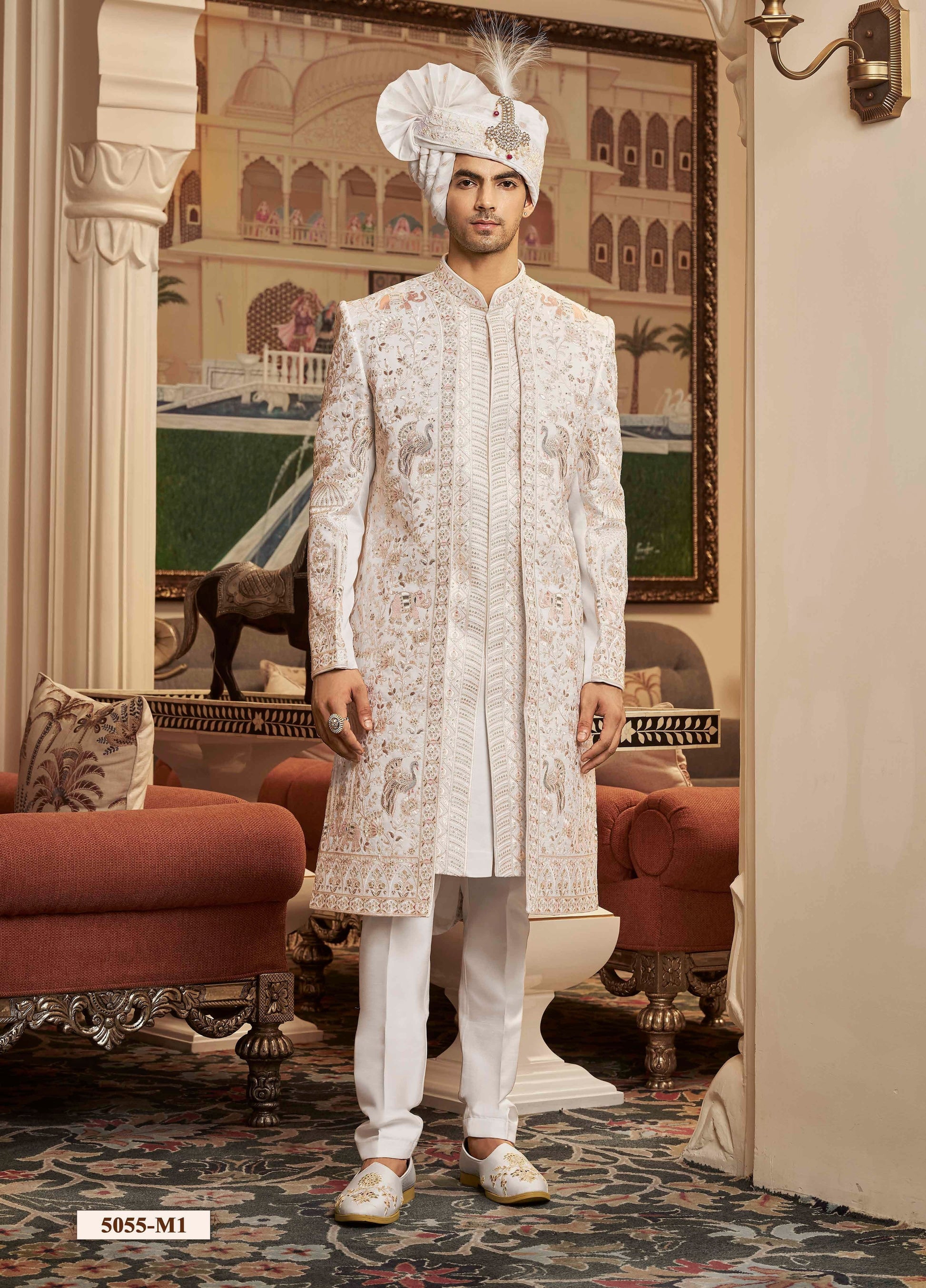 Immerse yourself in timeless elegance with our Classic Golden Zari & Threaded Embroidery Sherwani, a masterpiece designed for the modern groom who embodies tradition with sophistication. Crafted from premium Art Silk fabric, this Sherwani radiates a rich, luxurious allure. The exquisite blend of golden Zari and delicate threaded embroidery highlights royal craftsmanship, making it a statement piece for any grand celebration. Perfect for weddings, receptions, or festive occasions, this Sherwani reflects a regal aura and unparalleled finesse in every stitch.