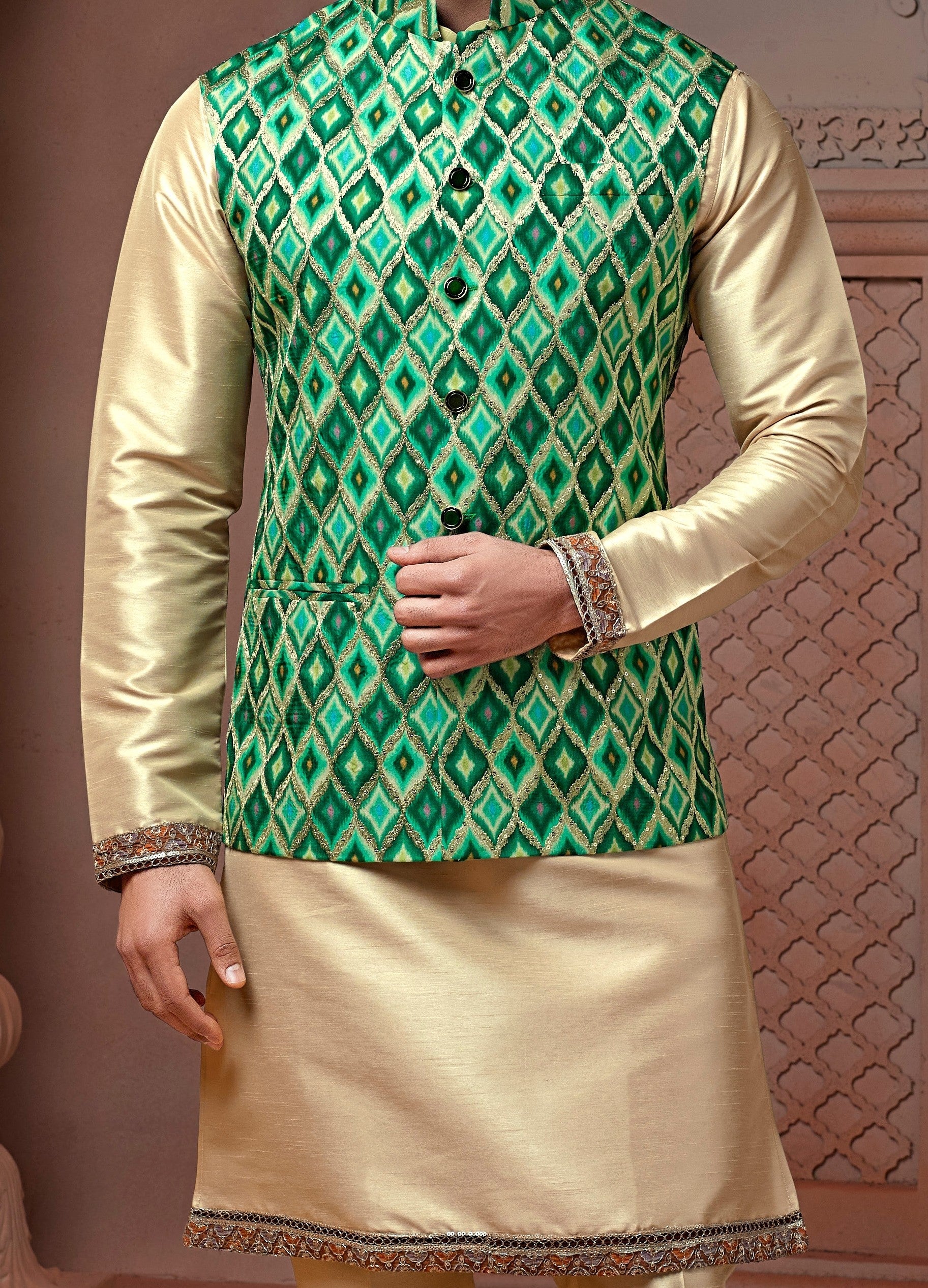 Product Description: Step into timeless elegance with our Multi-Colour Natural Soft Silk Koti and Plain Kurta set with golden zari and corded embroidery, thoughtfully crafted for the modern man who values tradition with a touch of sophistication. Made from premium natural soft silk, this kurta offers a luxurious feel, unmatched comfort, and a graceful drape for any special occasion.